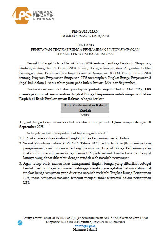 Tingkat Suku Bunga Penjaminan LPS